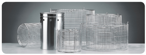 Vertical stainless steel wire baskets and containers in different sizes for all autoclave models.