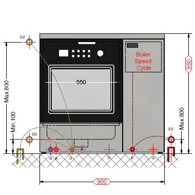 Prefiltro de secado al aire + filtro HEPA H14. Caldera para agua purificada. 2 bombas dosificadoras. 3 elementos calefactores. Condensador de vapor incorporado (opcional).