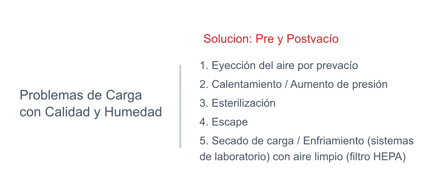 | Tiempo | Garantiza una exposición suficiente para la eliminación microbiana completa en toda la carga |