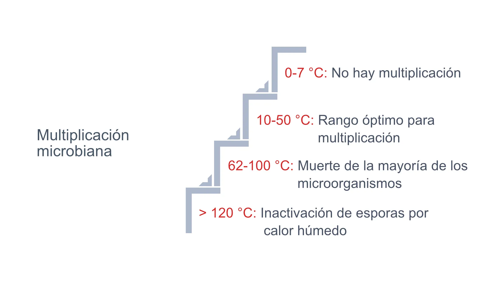 - 10–50 °C — Rango ideal para la multiplicación y el crecimiento microbiano