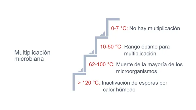 | Temperatura | El agente letal — el calor desnaturaliza las proteínas microbianas y destruye las estructuras celulares |