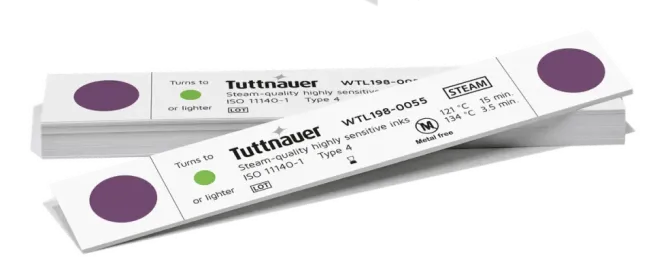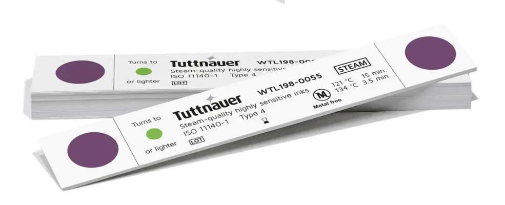 - Use: Place in challenging load areas; check post-cycle for uniform color change (see ISO 11140-1).